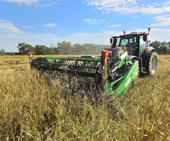 Elle fauche et andaine la culture avant la récolte à un stade précoce. Les andains sont laissés 5 à 10 jours avant le passage de la moissonneuse-batteuse, pour permettre le séchage de la récolte.