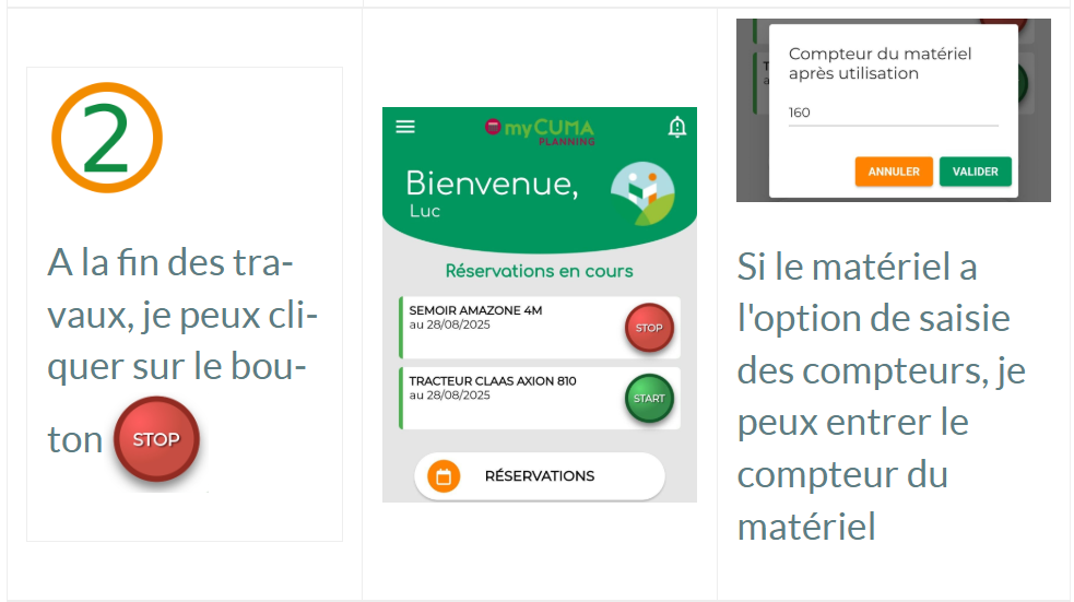 myCuma Planning et Travaux : Nouvelle version le 20 Octobre – Découvrez le Start & Stop réservations