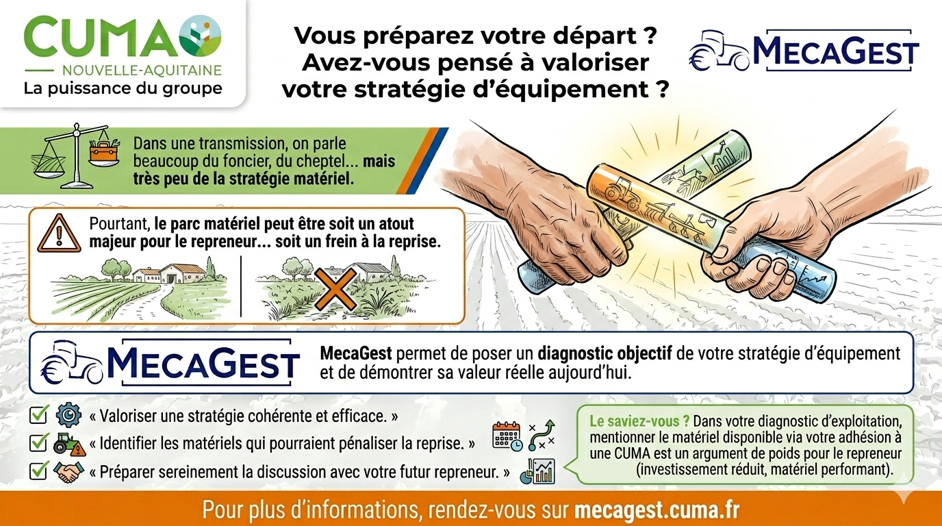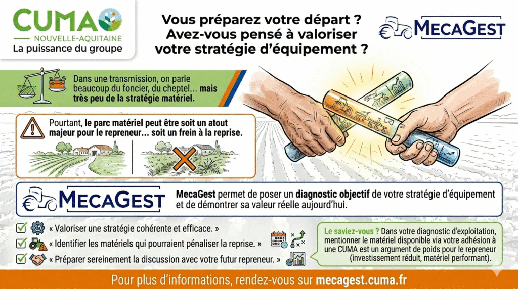 Avec l’arrivée du Point Accueil Départemental Unique (PADU) au 1er janvier 2027, le réseau CUMA renforce son accompagnement pour intégrer la stratégie d’équipement au cœur des projets d’installation et de transmission. Objectif : faire du matériel agricole un véritable levier de réussite, et non une contrainte subie.